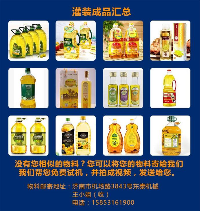產(chǎn)品簡(jiǎn)介 該系列灌裝機(jī)采用流量計(jì)式計(jì)量灌裝原理,多項(xiàng)專利認(rèn)證,適用于各種規(guī)格(1-5升)的南瓜籽油、榛子油、牡丹籽油、芝麻油、山茶油、亞麻籽油、棉籽油、橄欖油、大豆油、玉米油、菜籽油等