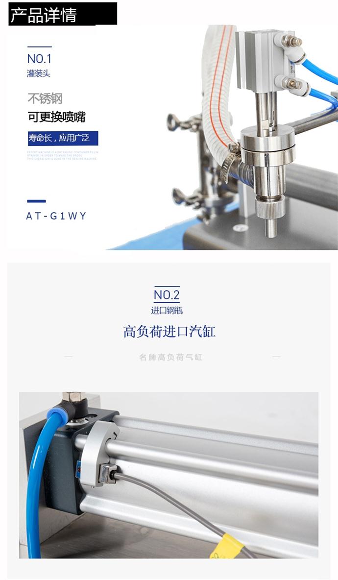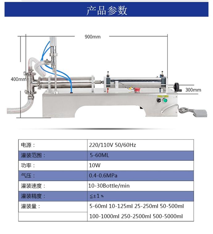 本公司生產的半自動活塞式單頭液體灌裝機是在本公司生產的灌裝機系列的基礎上,引進國外先進灌裝機技術,進行了進一步的改造和創新,其結構更加簡單合理,精確度高,操作更加簡便,是貴公司填充設備的理想選擇。
